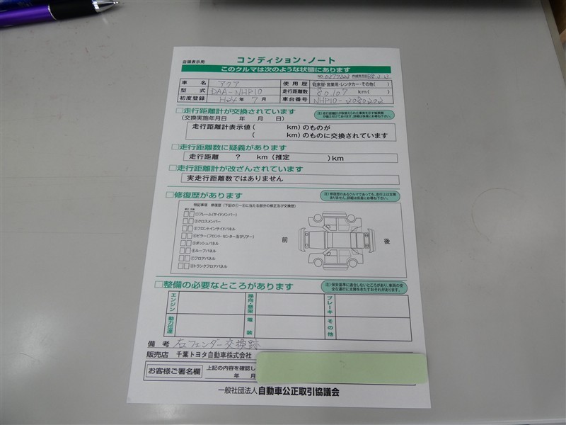 コンディションノート付き車両となっています。詳しくは、スタッフお問い合わせください。