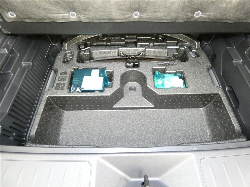 最近はパンク修理キットが標準ですね。タイヤの無い分軽量化と収納スペース確保できますね。
