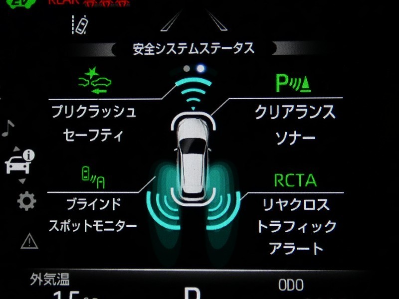 車線変更時などに、ドアミラーでは確認しにくい後側方エリア(ブラインドスポット)に存在する車両をレーダーで検知。警告サインをドアミラー等に表示することで、運転者に注意喚起する機能。
