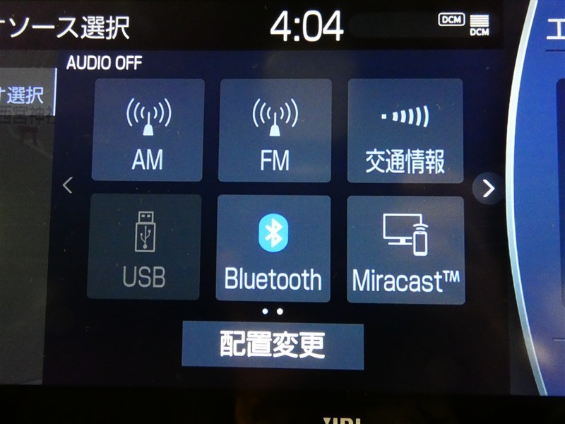 【オーディオ選択画面】AM/FMの切替や、交通情報もこちらの画面から選択できます。