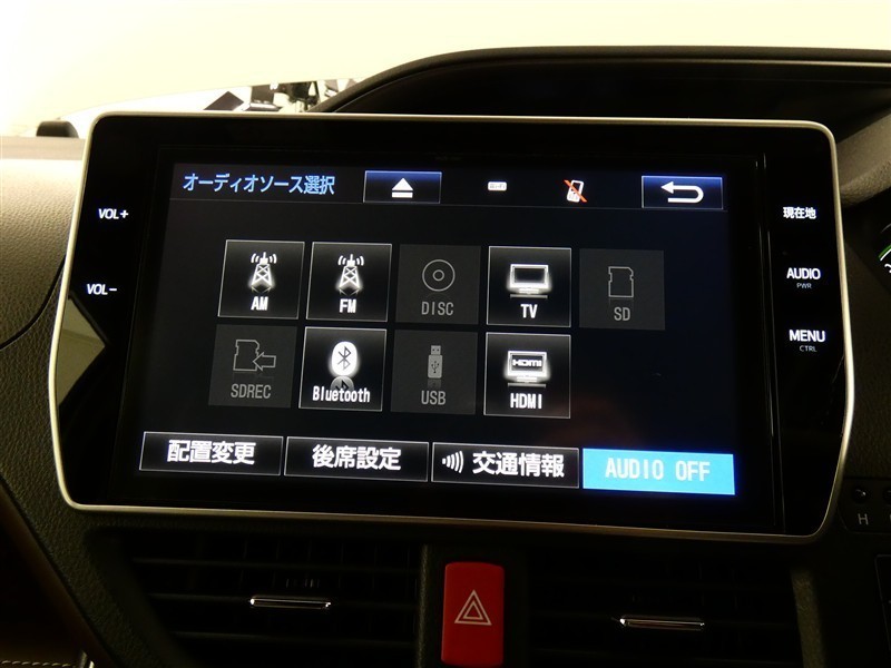 【オーディオ選択画面】AM/FMの切替や、交通情報もこちらの画面から選択できます。
