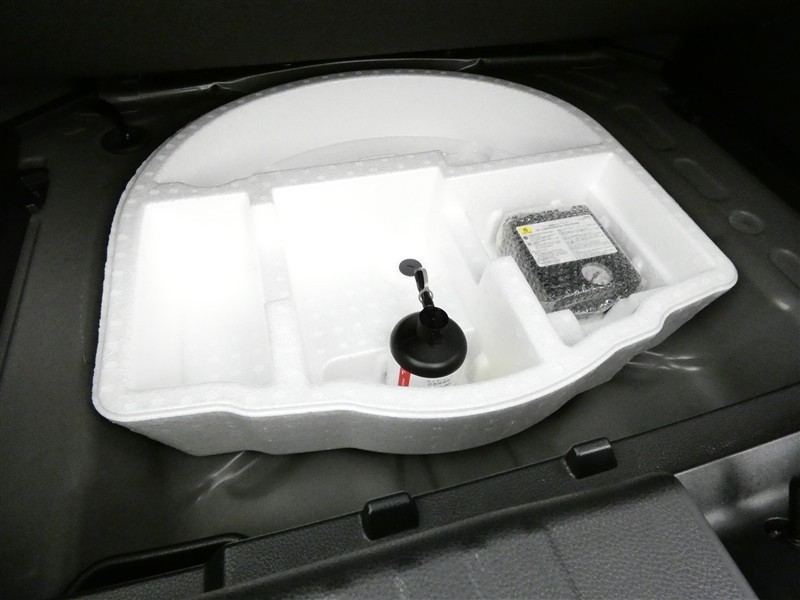 最近はパンク修理キットが標準ですね。タイヤの無い分軽量化と収納スペース確保できますね。