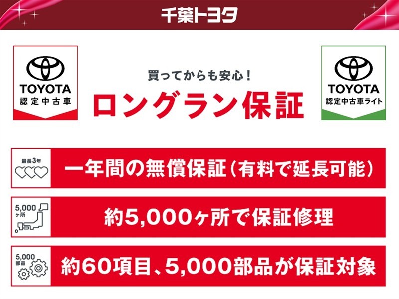 1年間走行距離無制限の「ロングラン保証」が付いています。年式は問わず、全国約5,000ヶ所のトヨタのお店で保証修理を受けることができます。