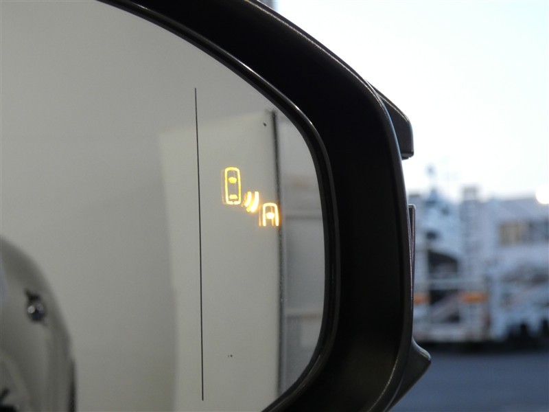 ブラインドスポットモニター装備。隣車線を走る車両を検知。ドアミラーでは確認しにくい後、側方エリアに存在する車両や急接近してくる車両も検知しドアミラーに搭載されたLEDインジケーターが点灯します。