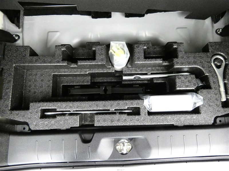 最近はパンク修理キットが標準ですね。タイヤの無い分軽量化と収納スペース確保できますね。