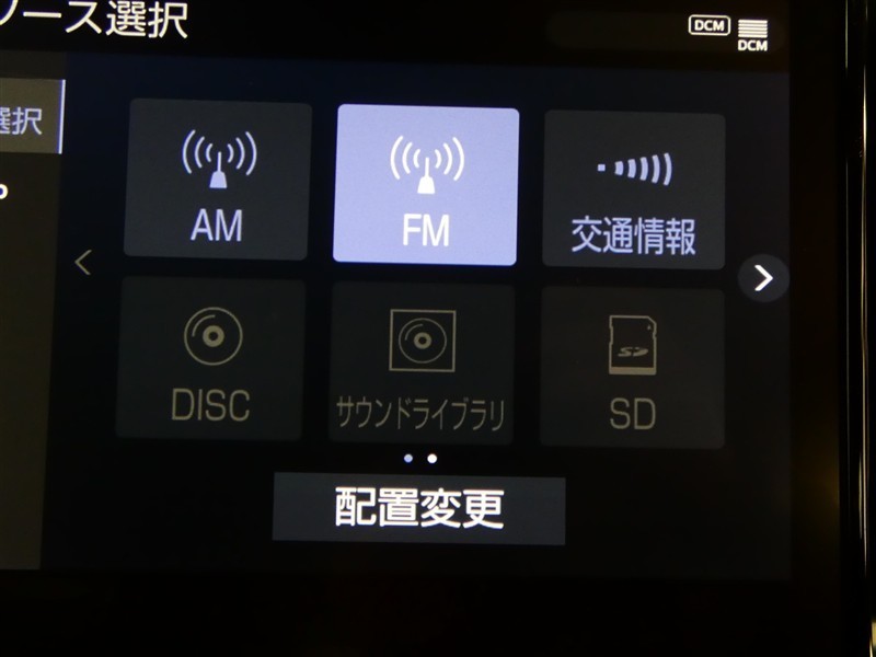 【オーディオ選択画面】AM/FMの切替や、交通情報もこちらの画面から選択できます。