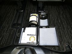 パンク修理剤とエアーポンプのセットです。スペアタイヤは装備していませんが空いたスペースを小物入れとして使用できます