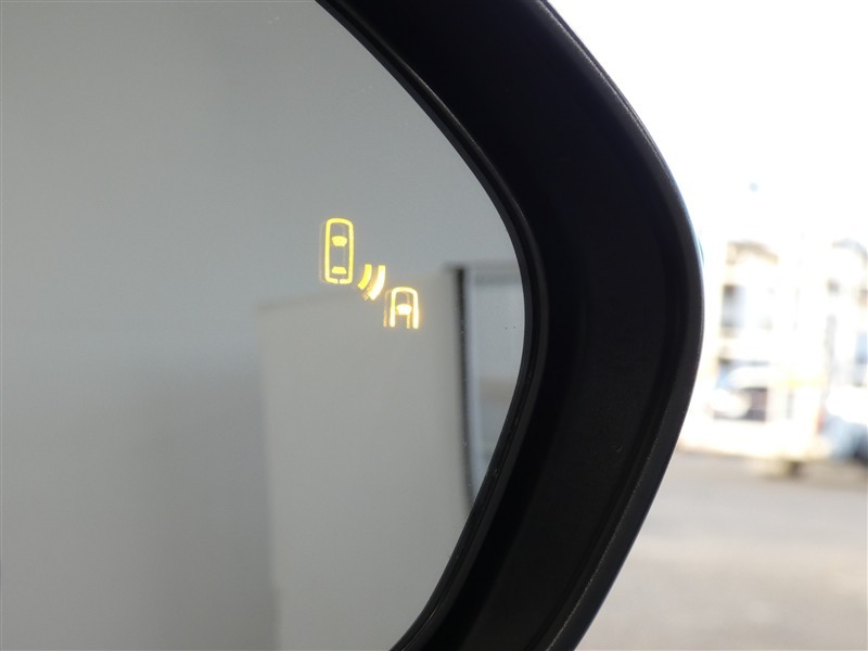 ブラインドスポットモニター装備。隣車線を走る車両を検知。ドアミラーでは確認しにくい後、側方エリアに存在する車両や急接近してくる車両も検知しドアミラーに搭載されたLEDインジケーターが点灯します。