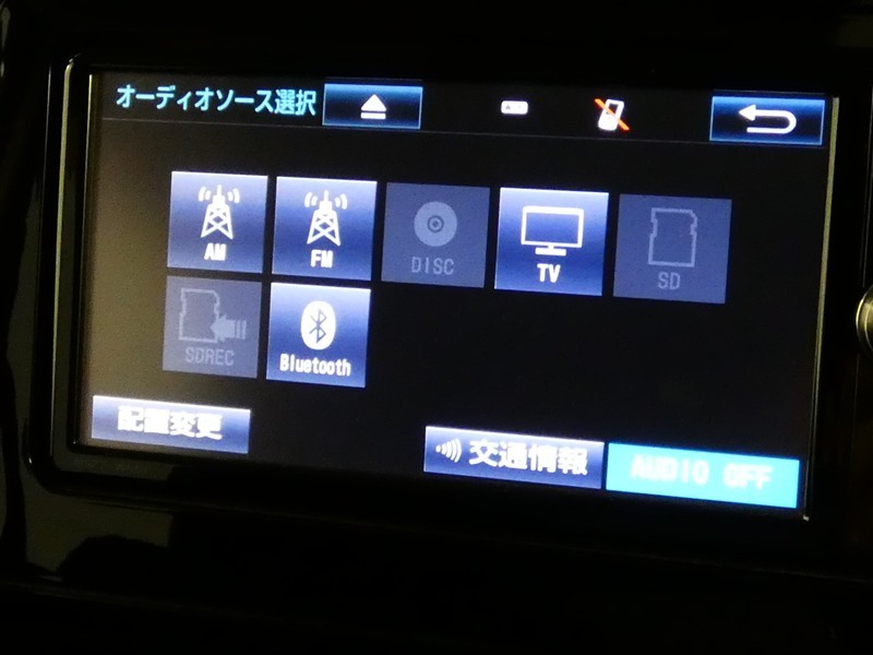 【オーディオ選択画面】AM/FMの切替や、交通情報もこちらの画面から選択できます。