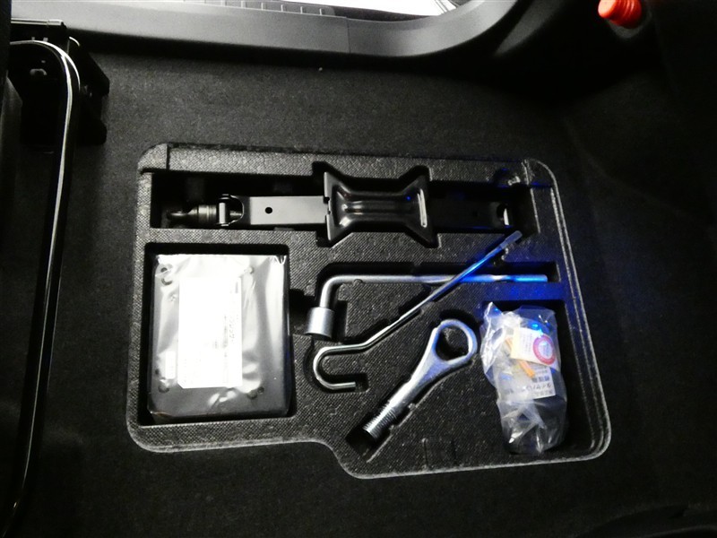 最近はパンク修理キットが標準ですね。タイヤの無い分軽量化と収納スペース確保できますね。