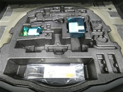 パンク修理剤とエアーポンプのセットです。スペアタイヤは装備していませんが空いたスペースを小物入れとして使用できます