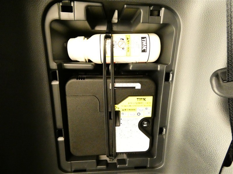 スペアタイヤレス車です。応急セットを搭載しております。