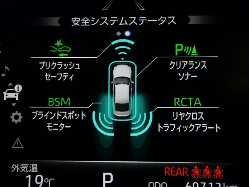 車線変更時などに、ドアミラーでは確認しにくい後側方エリア(ブラインドスポット)に存在する車両をレーダーで検知。警告サインをドアミラー等に表示することで、運転者に注意喚起する機能。