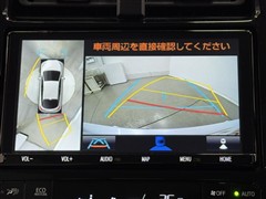 パノラミックビューモニターシステムが付いているので車の上から見た映像が確認できますよ。 一目で車両周辺の情報を確認できますが、直接安全をご確認下さい。