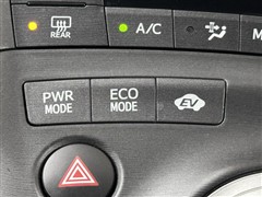 ハイブリッドならではの装備。EVスイッチを押すとモーターのみの走行が出来ますよ。 モーターで駆動するのでガソリンエンジンと比べると静かなので、早朝や深夜など大きな音を出さずに運転できますよ。