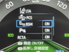 車線変更時などに、ドアミラーでは確認しにくい後側方エリア(ブラインドスポット)に存在する車両をレーダーで検知。警告サインをドアミラー等に表示することで、運転者に注意喚起する機能。
