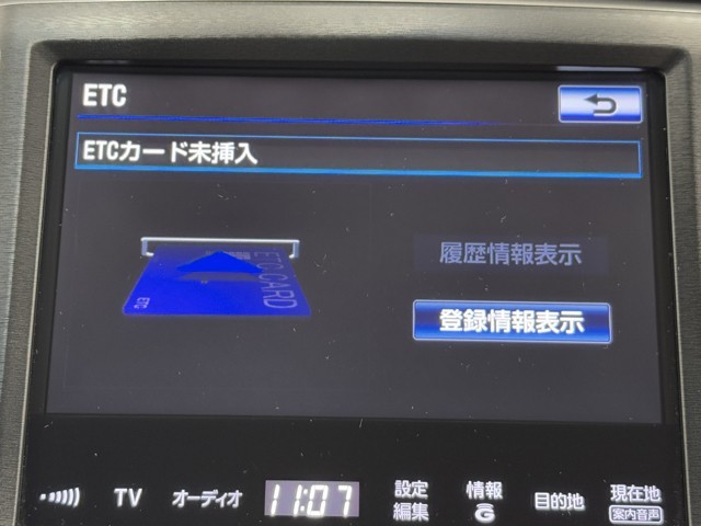 ナビ画面に連動したETCを装備しています。 過去に利用した利用料金も一目で分かって、とっても便利です。 ETCの抜き忘れ、挿し忘れも警告してくれるので安心ですね。