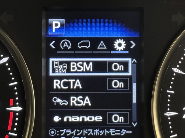 車線変更時などに、ドアミラーでは確認しにくい後側方エリア(ブラインドスポット)に存在する車両をレーダーで検知。警告サインをドアミラー等に表示することで、運転者に注意喚起する機能。