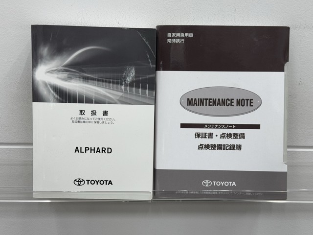 メンテナンスノート、取扱説明書です。 その車の整備記録が事細やかに記録されています。 車が生まれてから今までどのような道を歩んできたのか判るとても重要な物ですよ。
