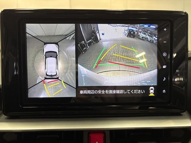 パノラミックビューモニターシステムが付いているので車の上から見た映像が確認できますよ。 一目で車両周辺の情報を確認できますが、直接安全をご確認下さい。