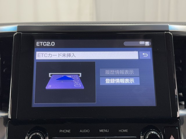 ナビ画面に連動したETCを装備しています。 過去に利用した利用料金も一目で分かって、とっても便利です。 ETCの抜き忘れ、挿し忘れも警告してくれるので安心ですね。