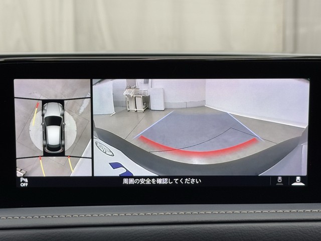 パノラミックビューモニターシステムが付いているので車の上から見た映像が確認できますよ。 一目で車両周辺の情報を確認できますが、直接安全をご確認下さい。