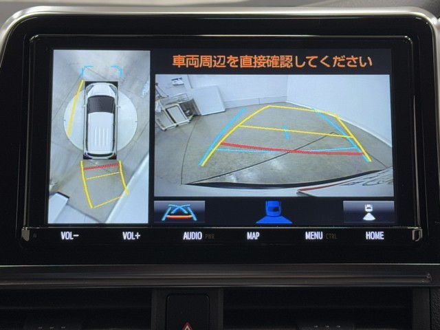 パノラミックビューモニターシステムが付いているので車の上から見た映像が確認できますよ。 一目で車両周辺の情報を確認できますが、直接安全をご確認下さい。
