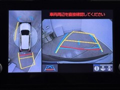 パノラミックビューモニターシステムが付いているので車の上から見た映像が確認できますよ。 一目で車両周辺の情報を確認できますが、直接安全をご確認下さい。