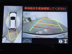 パノラミックビューモニターシステムが付いているので車の上から見た映像が確認できますよ。 一目で車両周辺の情報を確認できますが、直接安全をご確認下さい。