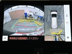 パノラミックビューモニターシステムが付いているので車の上から見た映像が確認できますよ。 一目で車両周辺の情報を確認できますが、直接安全をご確認下さい。