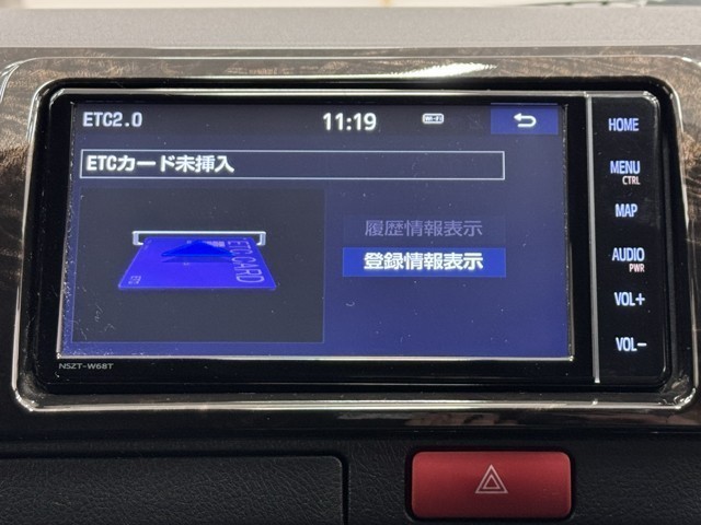 ナビ画面に連動したETCを装備しています。 過去に利用した利用料金も一目で分かって、とっても便利です。 ETCの抜き忘れ、挿し忘れも警告してくれるので安心ですね。