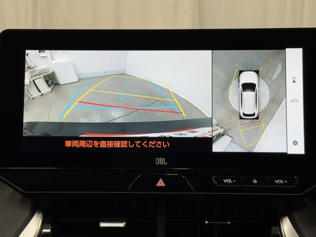 パノラミックビューモニターシステムが付いているので車の上から見た映像が確認できますよ。 一目で車両周辺の情報を確認できますが、直接安全をご確認下さい。