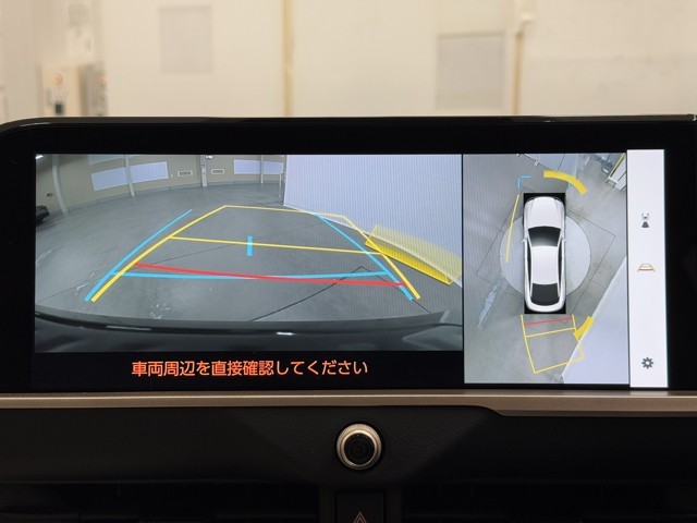パノラミックビューモニターシステムが付いているので車の上から見た映像が確認できますよ。 一目で車両周辺の情報を確認できますが、直接安全をご確認下さい。