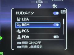 車線変更時などに、ドアミラーでは確認しにくい後側方エリア(ブラインドスポット)に存在する車両をレーダーで検知。警告サインをドアミラー等に表示することで、運転者に注意喚起する機能。