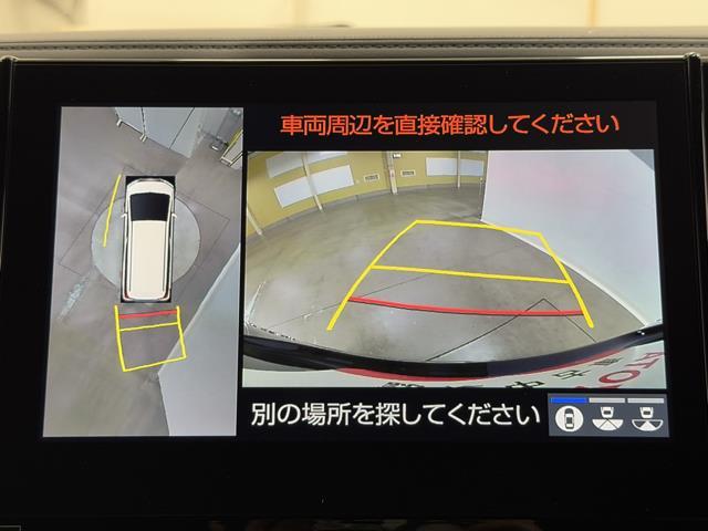 パノラミックビューモニターシステムが付いているので車の上から見た映像が確認できますよ。 一目で車両周辺の情報を確認できますが、直接安全をご確認下さい。