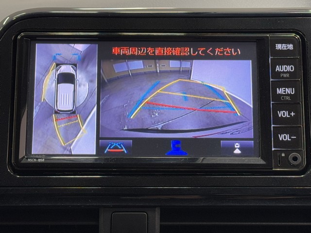 パノラミックビューモニターシステムが付いているので車の上から見た映像が確認できますよ。 一目で車両周辺の情報を確認できますが、直接安全をご確認下さい。