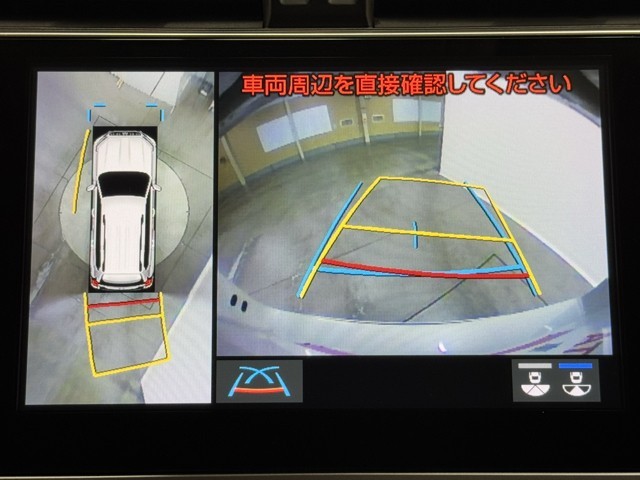 パノラミックビューモニターシステムが付いているので車の上から見た映像が確認できますよ。 一目で車両周辺の情報を確認できますが、直接安全をご確認下さい。