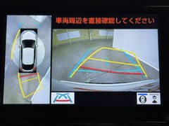 パノラミックビューモニターシステムが付いているので車の上から見た映像が確認できますよ。 一目で車両周辺の情報を確認できますが、直接安全をご確認下さい。