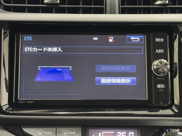 ナビ画面に連動したETCを装備しています。 過去に利用した利用料金も一目で分かって、とっても便利です。 ETCの抜き忘れ、挿し忘れも警告してくれるので安心ですね。