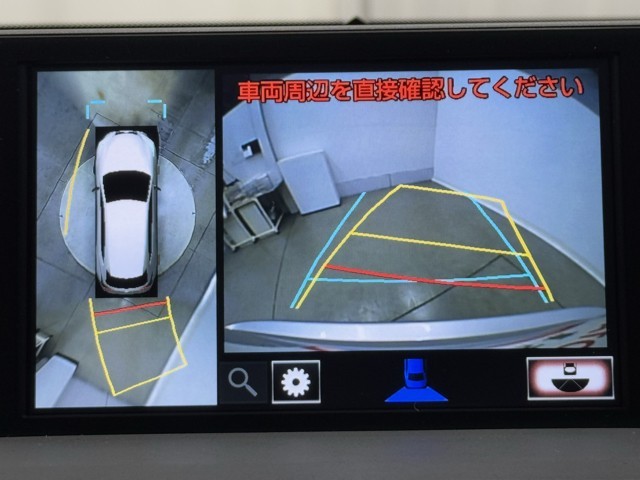 パノラミックビューモニターシステムが付いているので車の上から見た映像が確認できますよ。 一目で車両周辺の情報を確認できますが、直接安全をご確認下さい。