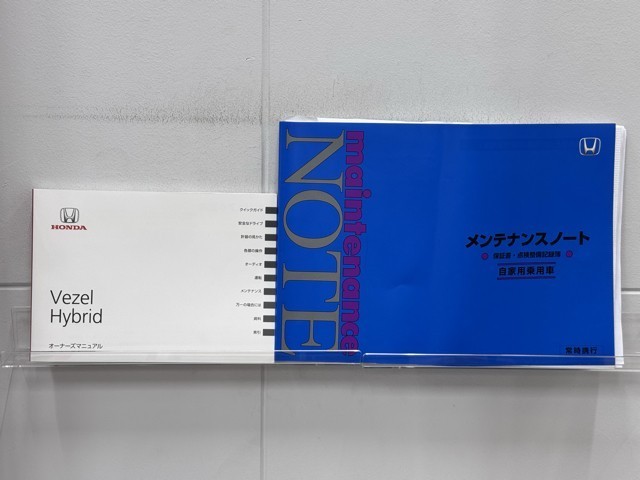 メンテナンスノート、取扱説明書です。 その車の整備記録が事細やかに記録されています。 車が生まれてから今までどのような道を歩んできたのか判るとても重要な物ですよ。