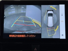 パノラミックビューモニターシステムが付いているので車の上から見た映像が確認できますよ。 一目で車両周辺の情報を確認できますが、直接安全をご確認下さい。