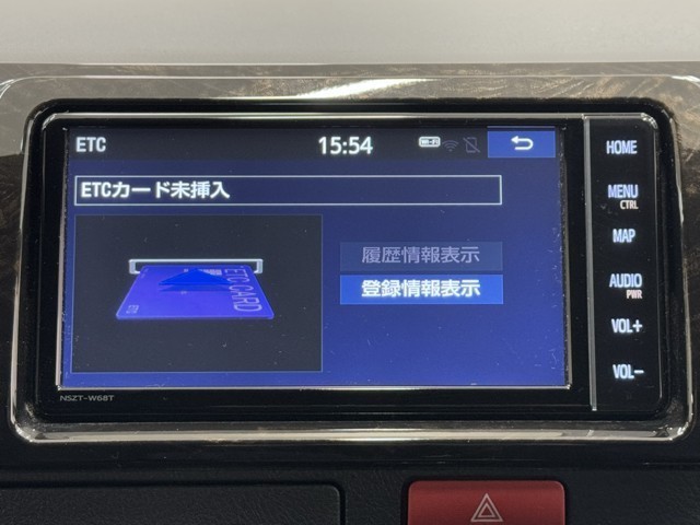ナビ画面に連動したETCを装備しています。 過去に利用した利用料金も一目で分かって、とっても便利です。 ETCの抜き忘れ、挿し忘れも警告してくれるので安心ですね。
