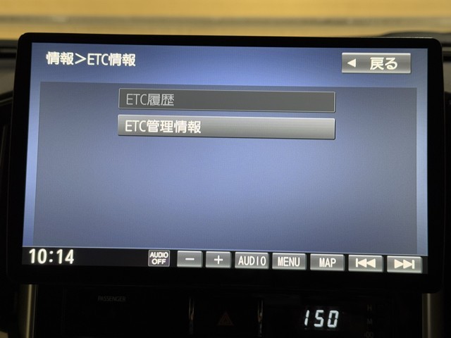 ナビ画面に連動したETCを装備しています。 過去に利用した利用料金も一目で分かって、とっても便利です。 ETCの抜き忘れ、挿し忘れも警告してくれるので安心ですね。