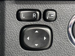 電動格納ミラーの操作スイッチですね。 駐車時にミラーを動かそうと外に出る必要も無く、悪天候の時でも運転席に居ながらミラーの操作できますよ。 一度使うと手放せない装備ですよね。