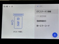 ナビ画面に連動したETCを装備しています。 過去に利用した利用料金も一目で分かって、とっても便利です。 ETCの抜き忘れ、挿し忘れも警告してくれるので安心ですね。