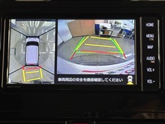 パノラミックビューモニターシステムが付いているので車の上から見た映像が確認できますよ。 一目で車両周辺の情報を確認できますが、直接安全をご確認下さい。