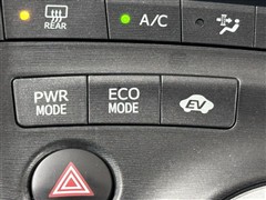 ハイブリッドならではの装備。EVスイッチを押すとモーターのみの走行が出来ますよ。 モーターで駆動するのでガソリンエンジンと比べると静かなので、早朝や深夜など大きな音を出さずに運転できますよ。