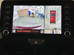パノラミックビューモニターシステムが付いているので車の上から見た映像が確認できますよ。 一目で車両周辺の情報を確認できますが、直接安全をご確認下さい。