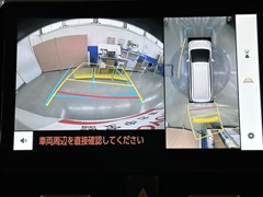 パノラミックビューモニターシステムが付いているので車の上から見た映像が確認できますよ。 一目で車両周辺の情報を確認できますが、直接安全をご確認下さい。
